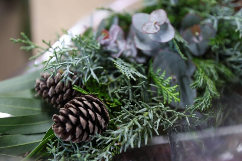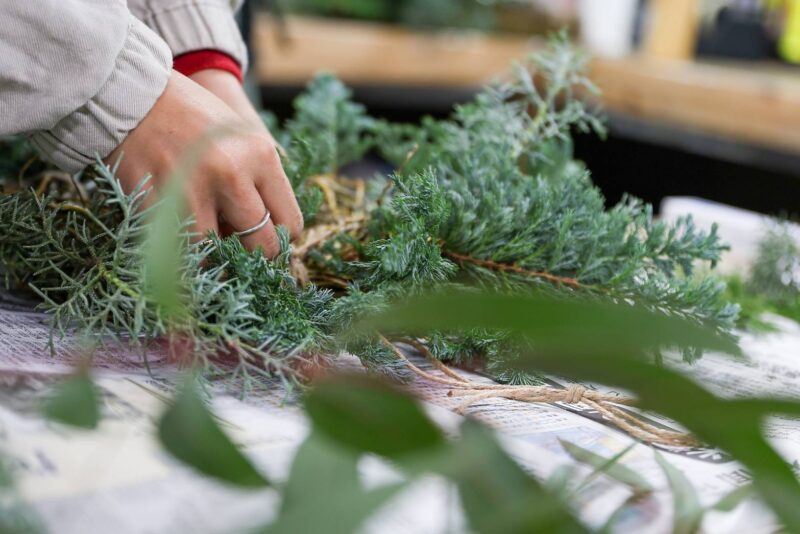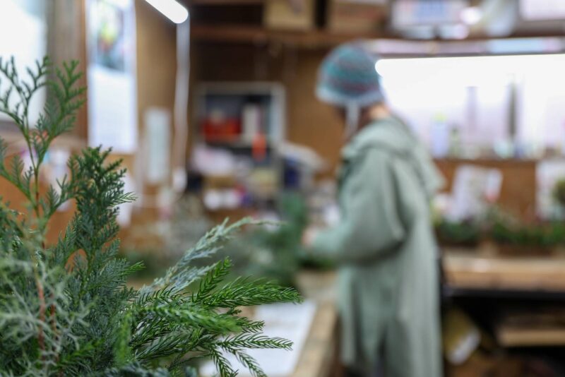 人気のクリスマスリースやスワッグをはじめ、おすすめのアレンジメントやツリー、小さなお子さんとお家で作れるキットも揃っているそうです。