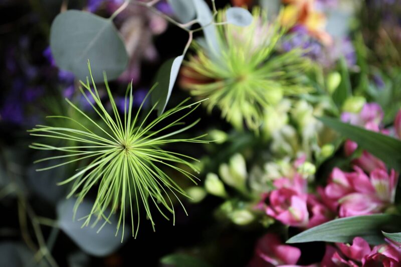 小さな花束の中に種類豊富な草花が心地のよいバランスで寄せられていて自然に調和した「添える」さんならではの世界観に引き寄せられます。