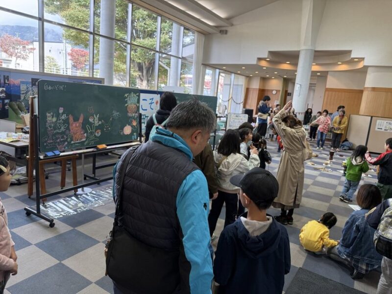 さて、文化の日の祝日には、飯島町文化館で子どもから大人まで楽しめるアートなイベントが開催されました。その名も『表現アートまつり』。「わくわく」をテーマに20を越えるワークショップが集まりました。景品のもらえるスタンプラリーからサービス券のあたるくじ引きなど、ブースを回るお楽しみもたくさん用意されていました。