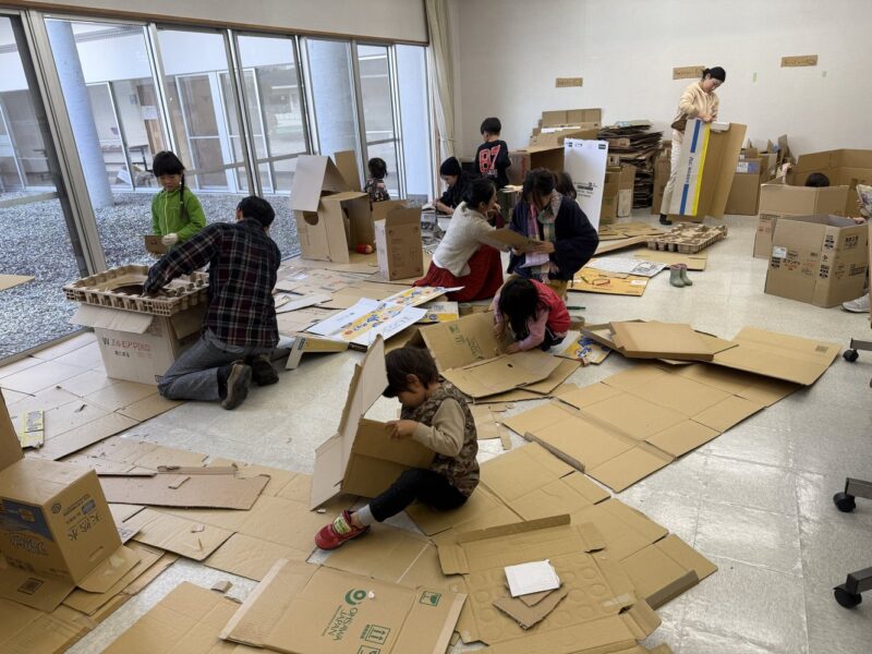 ㉓造形ではお部屋いっぱいの段ボールと新聞紙でジャングルができ上がりました。夢中になって切ったり、貼ったり、重ねたり。大人の方の真剣な作業が素敵でした!