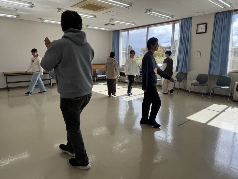 ㉕演劇では、身体を動かしたり発声の体験ができました。こちらでも飯島中の演劇部の皆さんがアシストをしてくれていました。長い口上を読み上げる滑舌は迫力がありました。