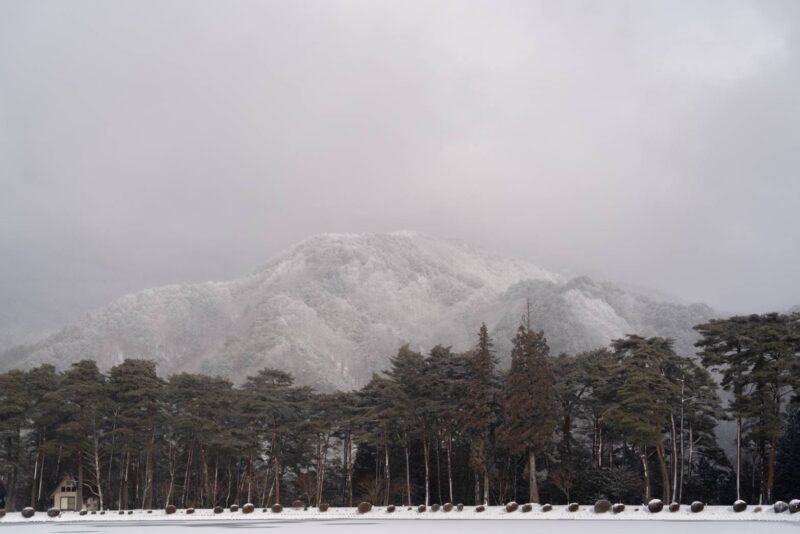 雪が似合う風景ですぐに思い浮かんだのは、千人塚公園の城ヶ池からみるアルプス。